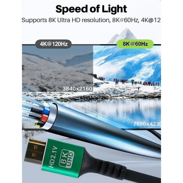 Conçu pour supporter les résolutions jusqu’à 8K, il assure une transmission fluide et stable des signaux audio et vidéo sans perte de qualité.