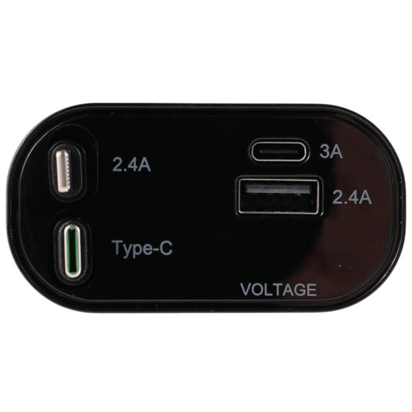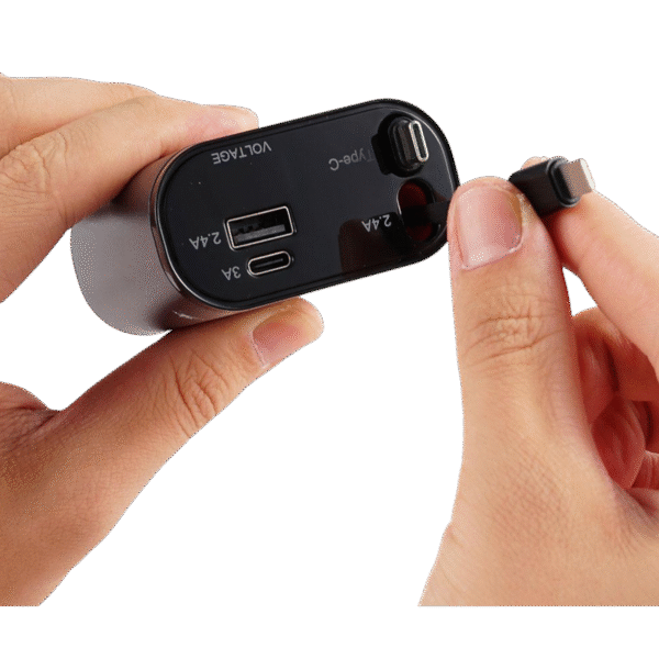 Viene con un práctico Puerto USB/tipo C. Cargador de coche, toma de cigarro, puerto de tipo C y 2 cables de carga, pueden cargar 4 dispositivos al mismo tiempo.