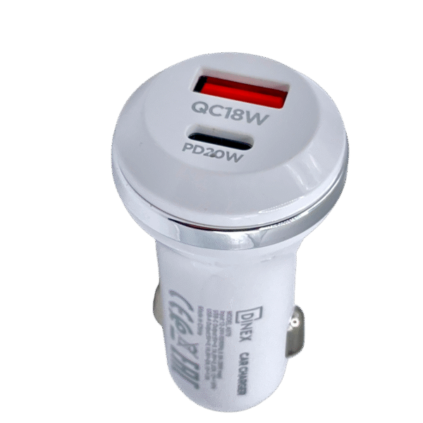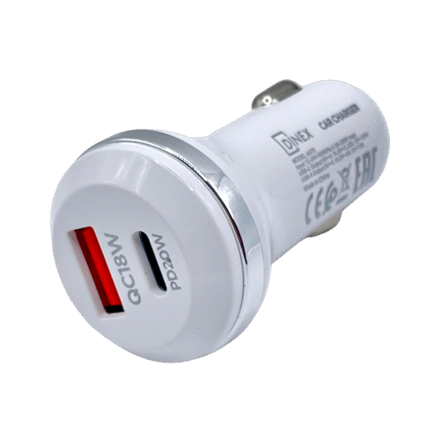 Le Dinex A570 est un chargeur de voiture intelligent et puissant qui combine élégance, performance et sécurité. Équipé de deux ports de sortie — un USB-C (PD 20W) et un USB-A (QC 18W) — il offre une puissance totale de 38W, permettant de recharger rapidement deux appareils simultanément.