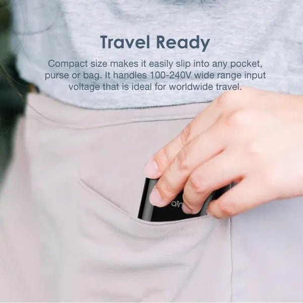 Sa taille compacte lui permet de se glisser facilement dans n’importe quelle poche, sac à main ou sac. Il gère une tension d’entrée à large plage de 100 à 240 V, idéale pour les voyages dans le monde entier.