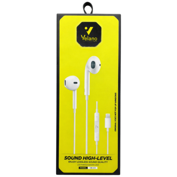 Les Velano VE-03 sont des écouteurs filaires Lightning conçus pour offrir une qualité sonore claire et équilibrée sur les appareils Apple. Grâce à leur conception ergonomique demi-intra-auriculaire, ils assurent un confort optimal même pendant une utilisation prolongée.
